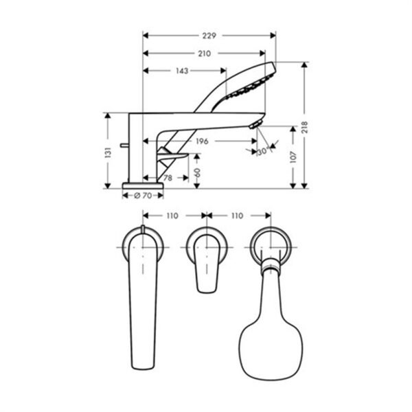 Hansgrohe Talis E 3 Delikli Küvet Bataryası. Projeksiyon 196 mm. Bağlantı türü: iç set ile. Akış miktarı (3 bar basınçta): 20 l/dk. Seramik kartuş. Ayarlanabilir ısı limitleyici. Otomatik yönlendirme sıfırlamasına sahip Detaylı bilgi için Whatsapp üzerinden bize ulaşın.