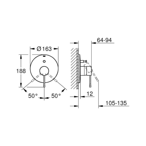 Grohe BauClassic İç Gövde Dahil Ankastre Banyo Bataryası