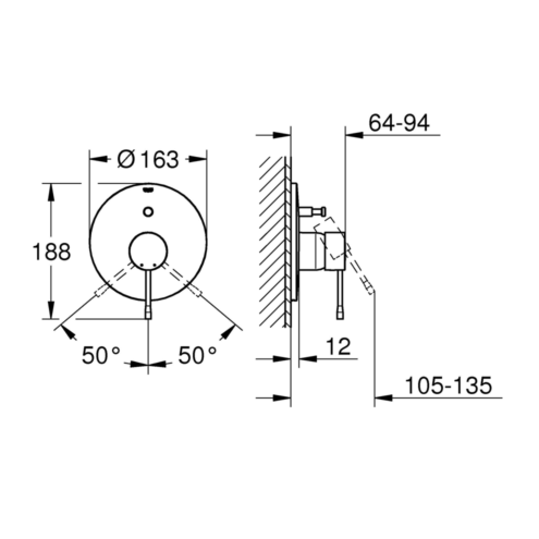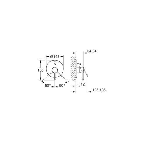 Grohe BauEdge İç Gövde Dahil Ankastre Yuvarlak Banyo Bataryası