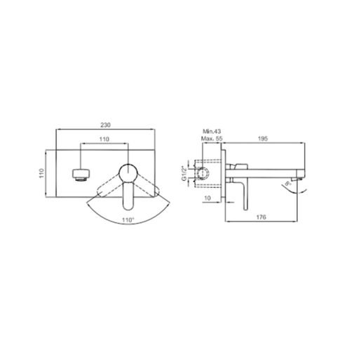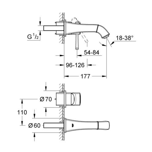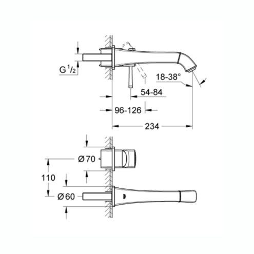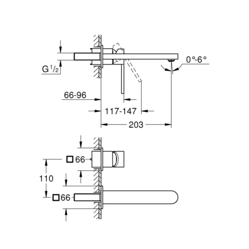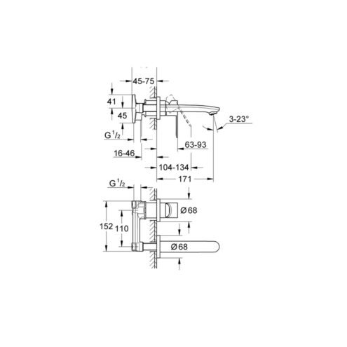 Grohe Lineare İki Delikli Ankastre Lavabo Bataryası L-Boyut