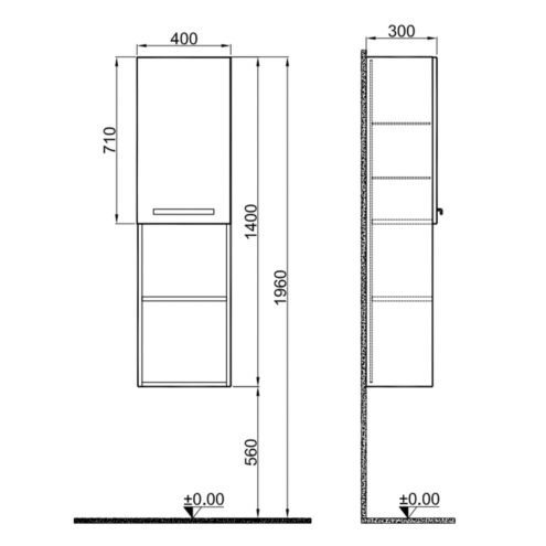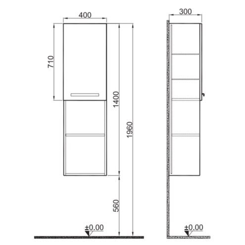 Kale Casilla 40 cm Mat Vizon Sepetsiz Boy Dolabı