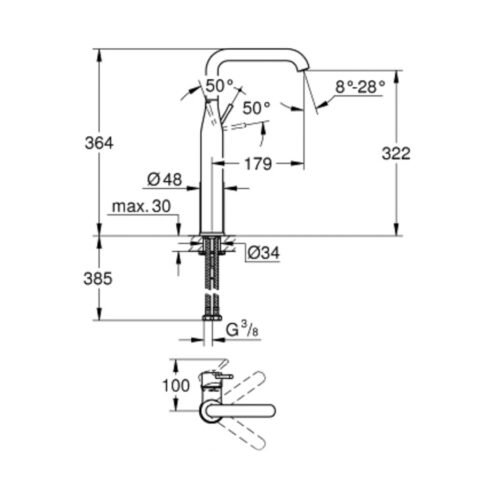 Grohe Concetto XL - Boyut Krom Lavabo Bataryası