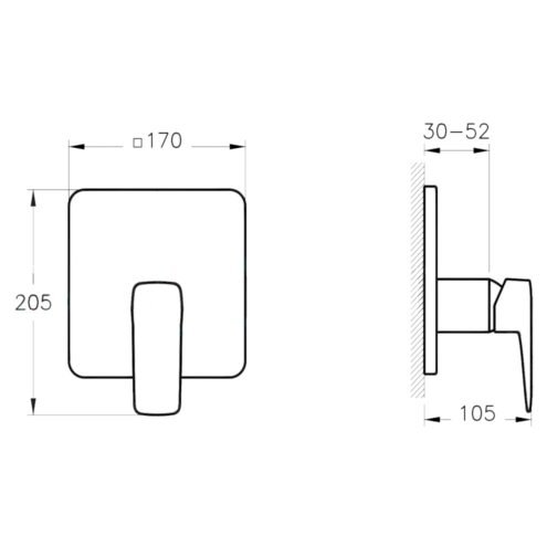 Artema Aquaheat Square Bakır Ankastre Termostatik Duş Bataryası