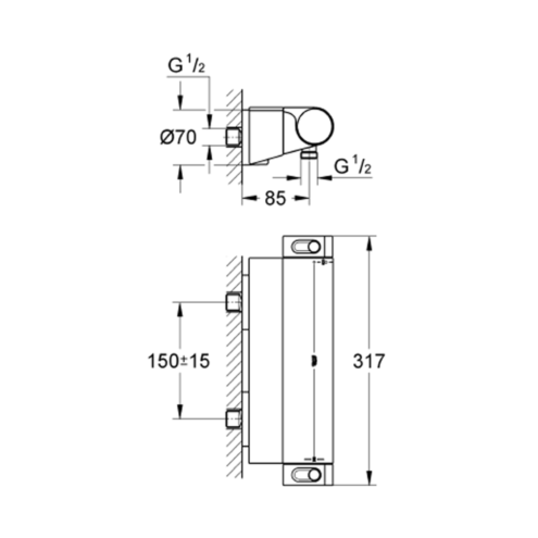 Grohe Grohtherm 500 Termostatik Krom Duş Bataryası