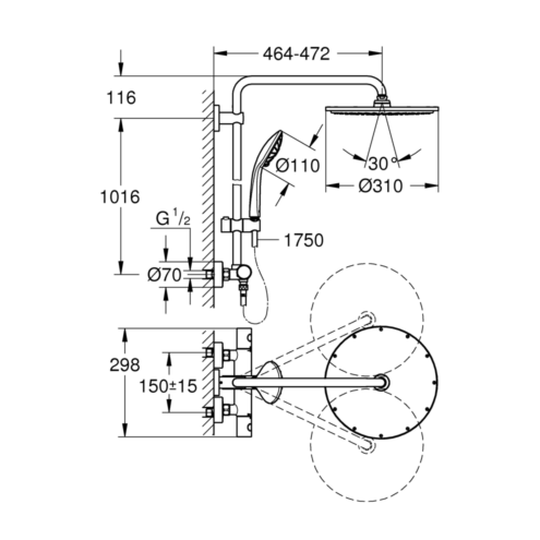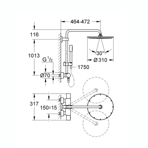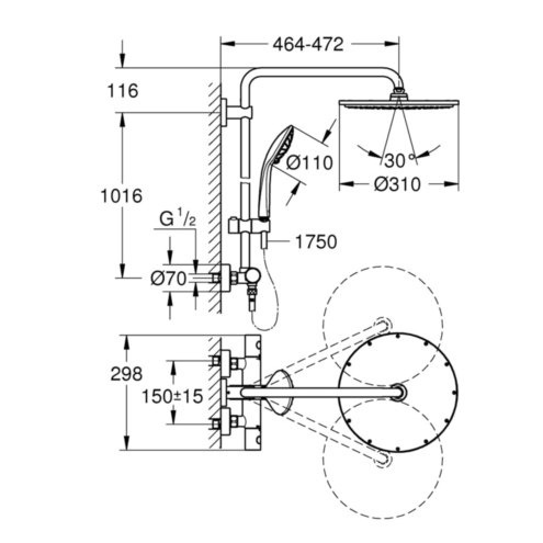 Grohe Rainshower 310 Termostatik Bataryalı Krom Duş Sistemi