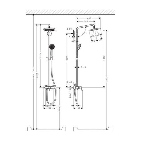 Hansgrohe Croma 220 Banyo Bataryalı Duş Kolonu