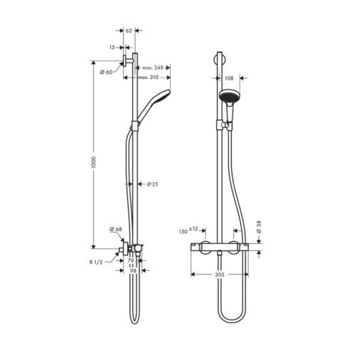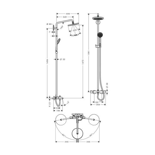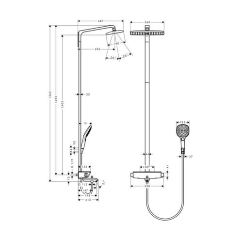 Hansgrohe Raindance Select E Duş kolonu 360 küvetler için  DN15