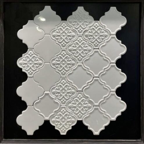Dekozen Ottoman Çiçek-Kenar Rölyef 12x12 cm Parlak Beyaz Çatlak Sırlı El Yapımı Seramik