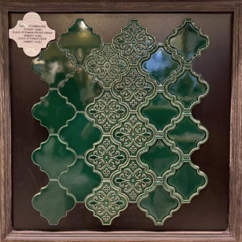Dekozen Ottoman Çiçek-Kenar Rölyef 12x12 cm Zümrüt Yeşili Çatlak Sırlı El Yapımı Seramik