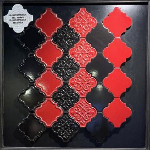 Dekozen Ottoman Düz-Çiçek Kenar 12x12 cm Kırmızı Çatlak Sırlı El Yapımı Seramik