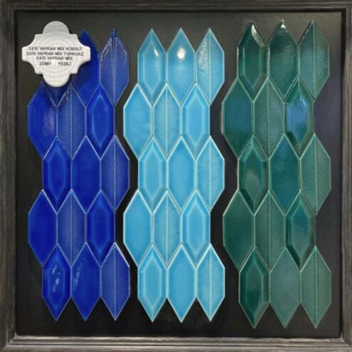 Dekozen Yaprak Düz-Metro-Çizgi 15x5 cm Petrol Mavisi Çatlak Sırlı El Yapımı Seramik