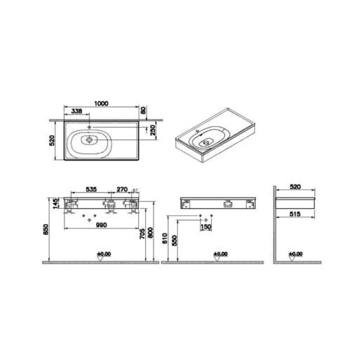 VitrA Equal 100 cm Karaağaç-Beyaz Asimetrik Etajerli Lavabo