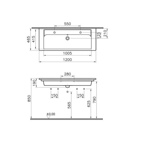 VitrA Integra 120 cm Beyaz Çift Armatür Delikli Etajerli Lavabo