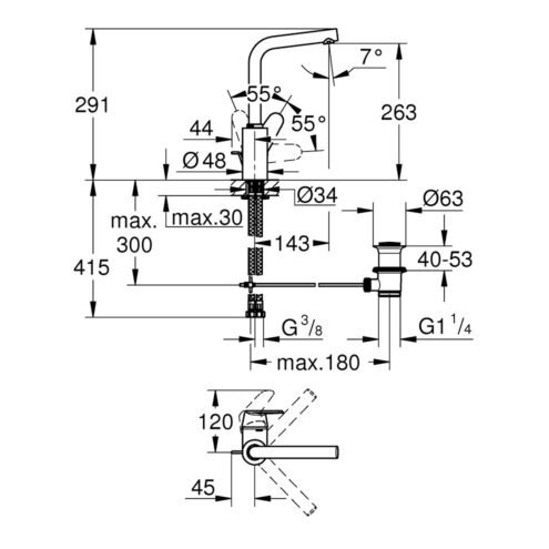Grohe Eurocube Lavabo Bataryası L-Boyut