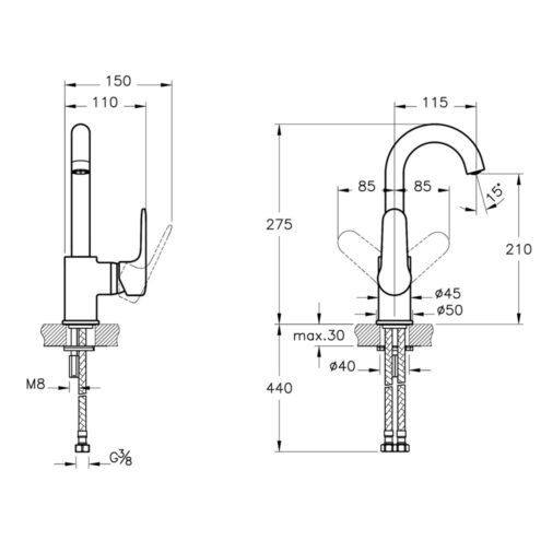 Artema Root Round Siyah Döner Borulu Lavabo Bataryası
