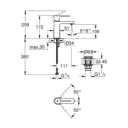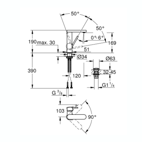 Grohe New Bauedge Sifon Kumandalı Lavabo Bataryası M-Boyut