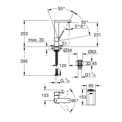 Grohe Lineare Sifon Kumandalı Lavabo Bataryası S-Boyut