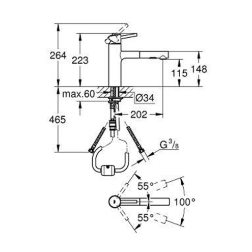 Grohe Essence Hard Graphite Spiralli Eviye Bataryası