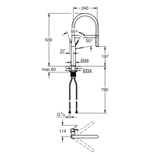 Grohe Blue Home Eviye Bataryası  C-Çıkış Ucu