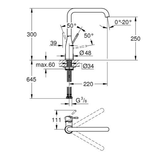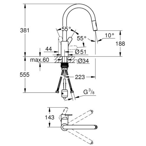 Grohe Eurocube Eviye Bataryası  Spiralli Hortum