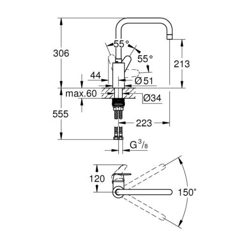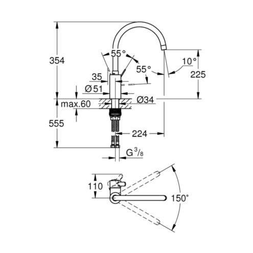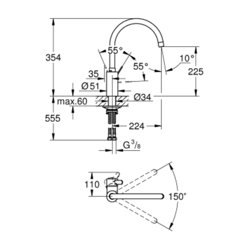 Grohe Eurodisc Cosmo Döner Borulu Eviye Bataryası