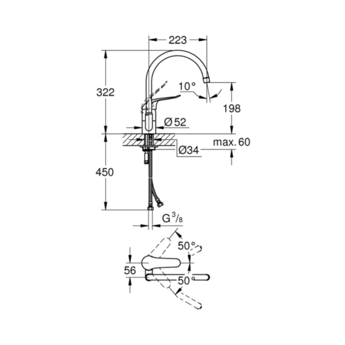Grohe Eurosmart Kuğu Borulu Eviye Bataryası