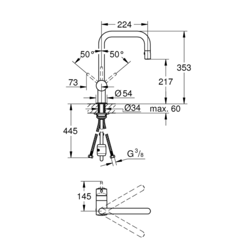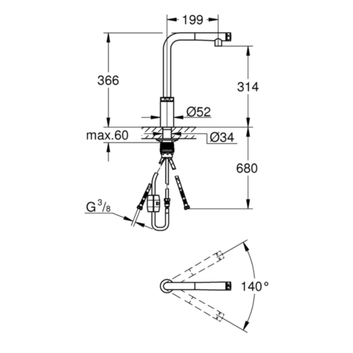 Grohe Minta Touch Elektronik Eviye Bataryası  L Tipi Çıkış Ucu