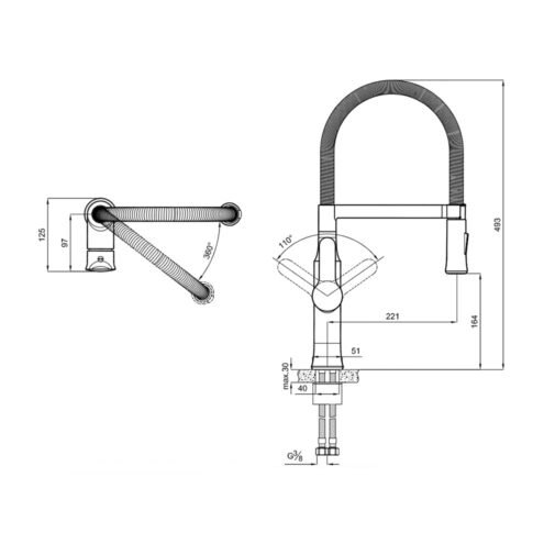 Kale Gastro Mat Siyah U Pull Down Mutfak Bataryası