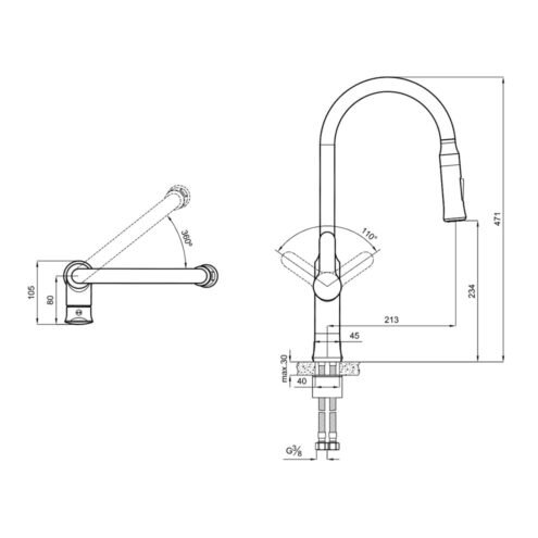 Kale Zero Siyah Döner Borulu Mutfak Bataryası