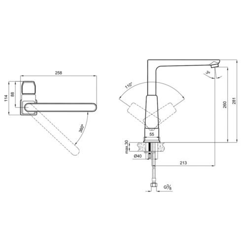 Kale Gastro Mat Siyah 2 Fonksiyonlu L Pull Out Mutfak Bataryası