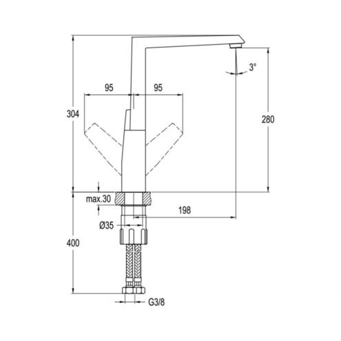 Newarc Aqua Köşe Borulu Beyaz Eviye Bataryası