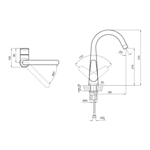 Kale Zero Siyah Döner Borulu Mutfak Bataryası