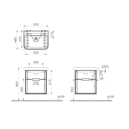VitrA Valarte 100 cm Mat Gri Çekmeceli Banyo Dolabı Takımı (Outlet)