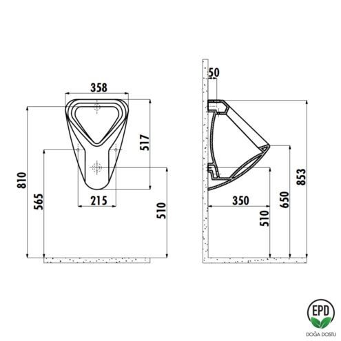 Creavit Beyaz Arkadan Su Girişli Pisuvar