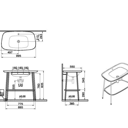 VitrA Liquid 100 cm Armatür Deliksiz Seramik Tezgah