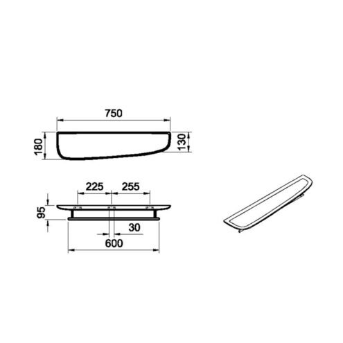 VitrA Plural 75 cm Siyah Meşe Metal Havluluklu Sağ Uzun Raf
