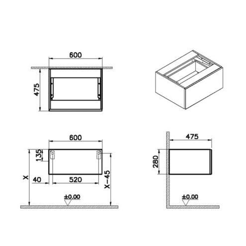 VitrA Origin 60 cm Karaağaç Çekmeceli Orta Ünite