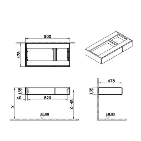 VitrA Origin 90 cm Hareli Siyah Meşe Sol Açılır çekmeceli Orta Ünite