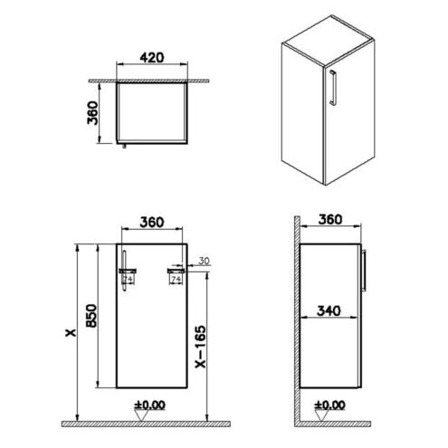 VitrA Origin 90 cm Karaağaç Sol Açılır çekmeceli Orta Ünite