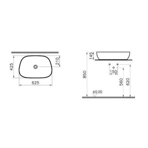 VitrA Outline 56 cm Mat Bej Asimetrik Lavabo