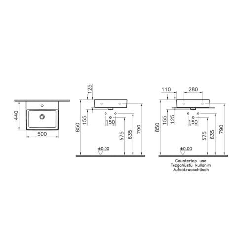 VitrA Nuo 50 cm Beyaz Dikdörtgen Tezgah Üstü Lavabo