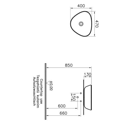 VitrA Outline 56 cm Mat Siyah Asimetrik Lavabo