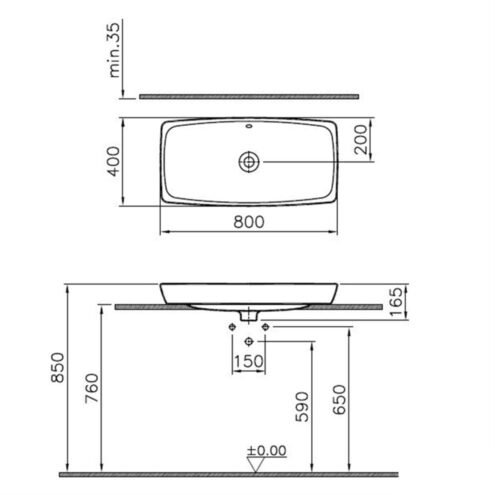 VitrA Metropole 80 cm Beyaz Tezgah Üstü Lavabo