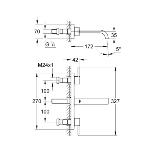 Grohe Allure Duvardan S-Boyut Üç Delikli Krom Lavabo Bataryası