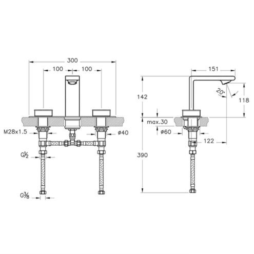 Grohe Atrio L-Boyut Çift Kumandalı Üç Delikli Krom Lavabo Bataryası