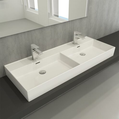 Bocchi Milano 120 cm Mat Beyaz Çift Gözlü Lavabo