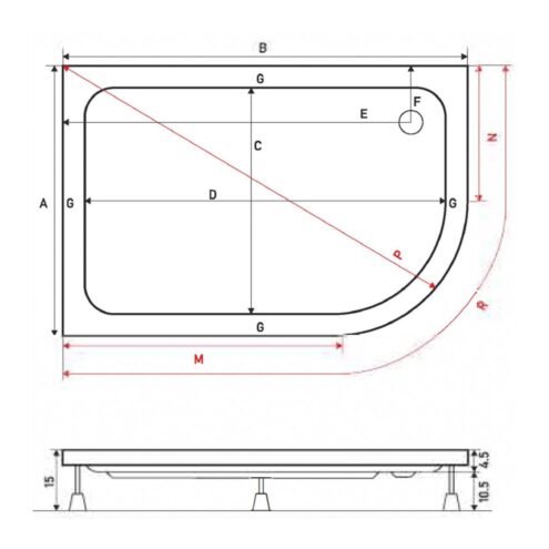 Shower Tundra 120x90 cm Asimetrik Düz Zemin Duş Teknesi