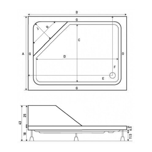 Shower Corner 120x80 cm Köşe Oturmalı Dikdörtgen Duş Teknesi