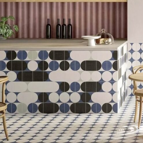 VitrA 15x15 cm Atelier 01 Mat Mavi&Siyah-Beyaz Porselen Karo