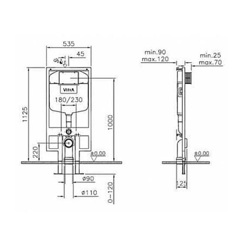 Vitra 3/6 lt Asma Klozetler İçin Alçıpan Duvar İçi (Yere Montaj) Sırt Sırta Uygulama Gömme Rezervuar